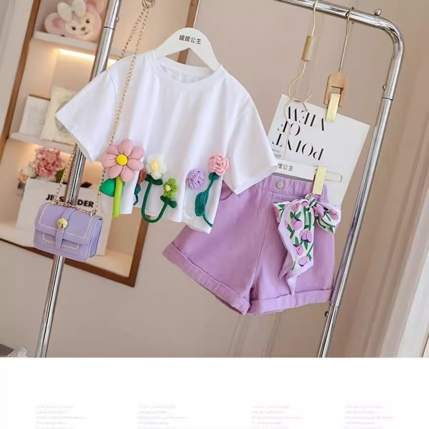 ✅Modelo: Conjunto Infantil Feminino Verão Florzinhas