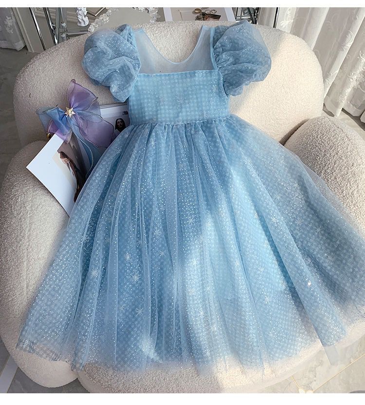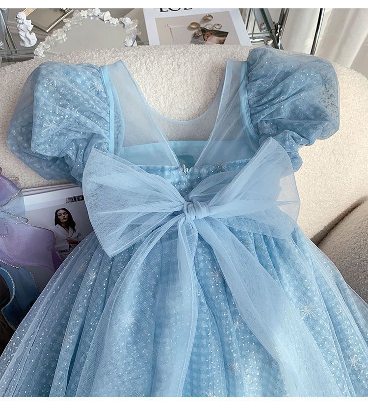 ✅ Modelo: Vestido Infantil Azul Brilhos e Laço