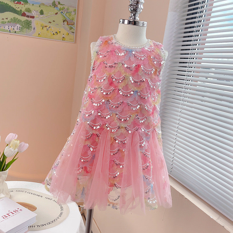 ✅ Modelo: Vestido Infantil Brilhante Rosa Sereia