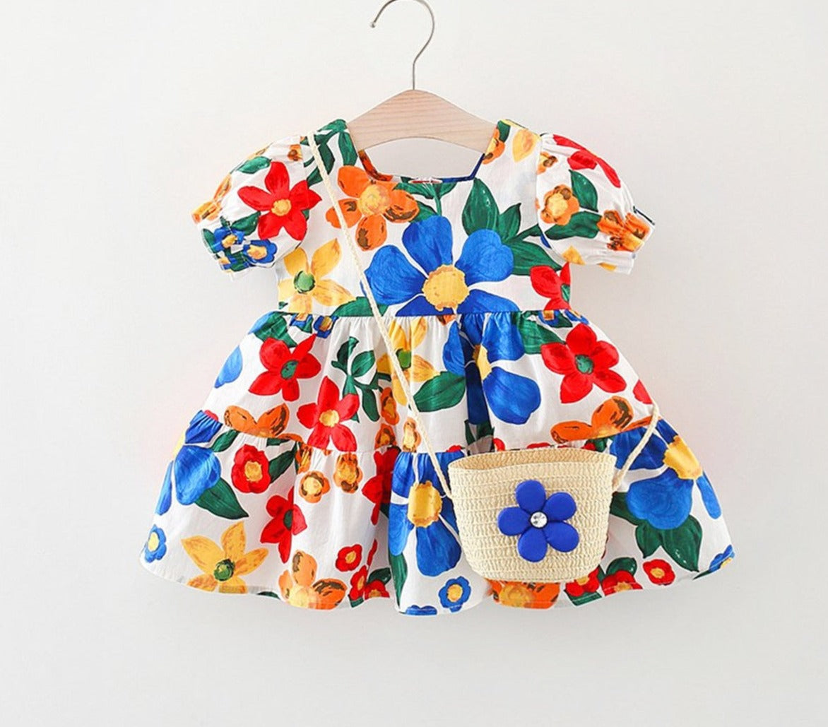 ✅ Modelo: Vestido Infantil Floral Bolsinha